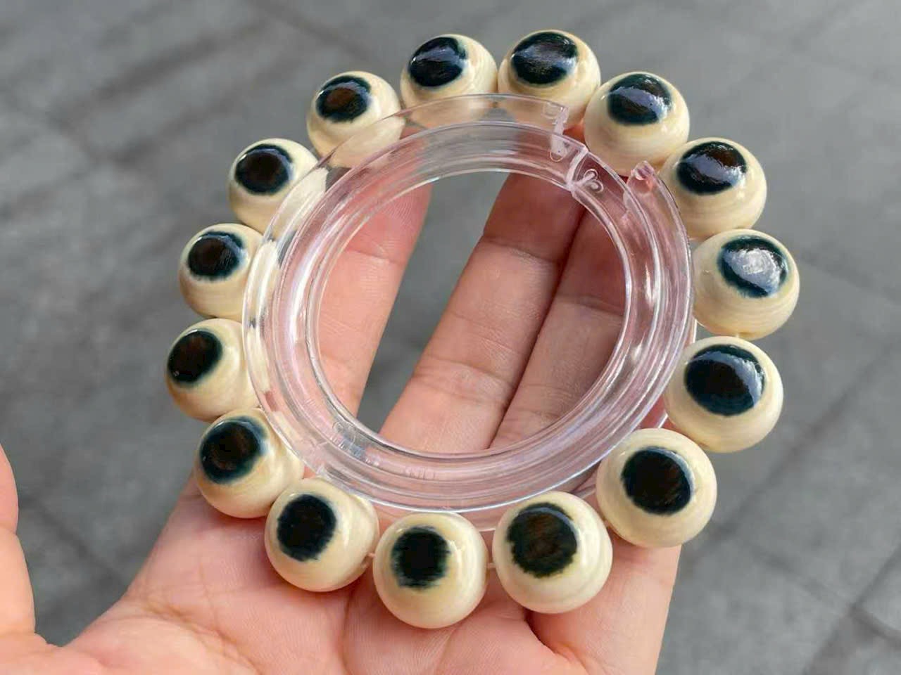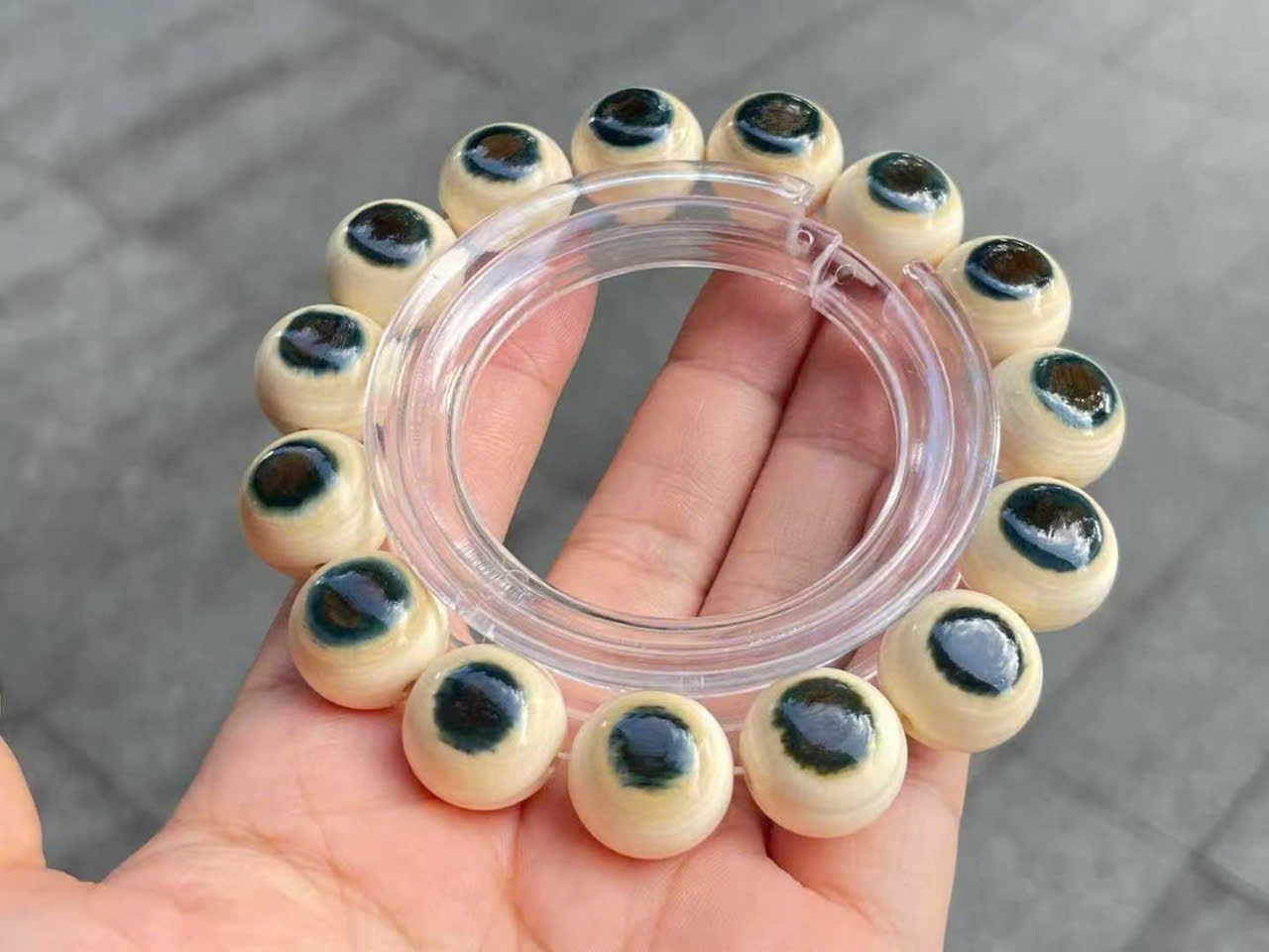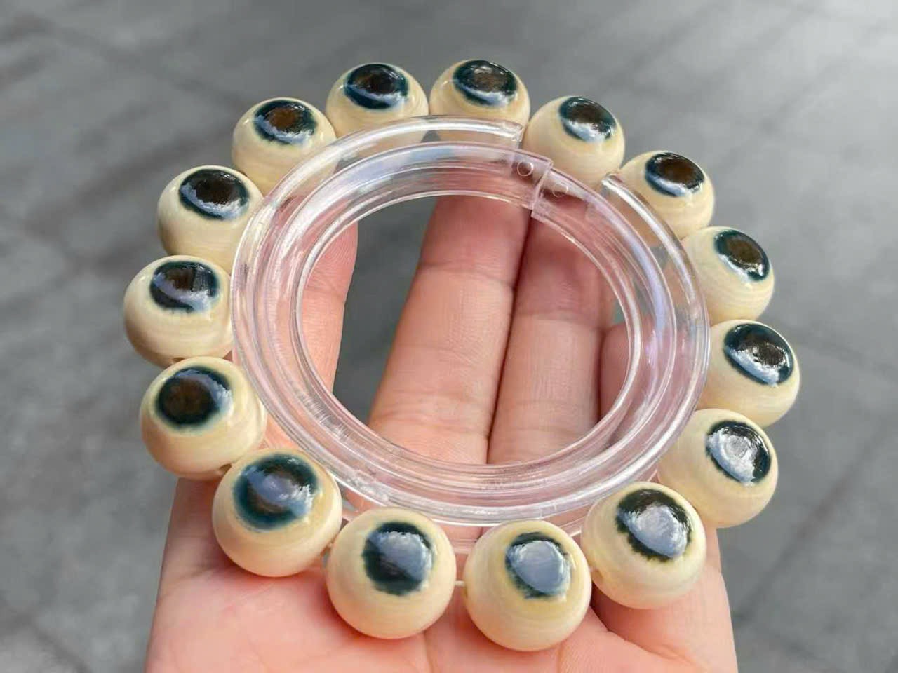 Vòng tay song sắc “Lam Nhãn” | Chất liệu ng.à ma mút, hạt 15mm