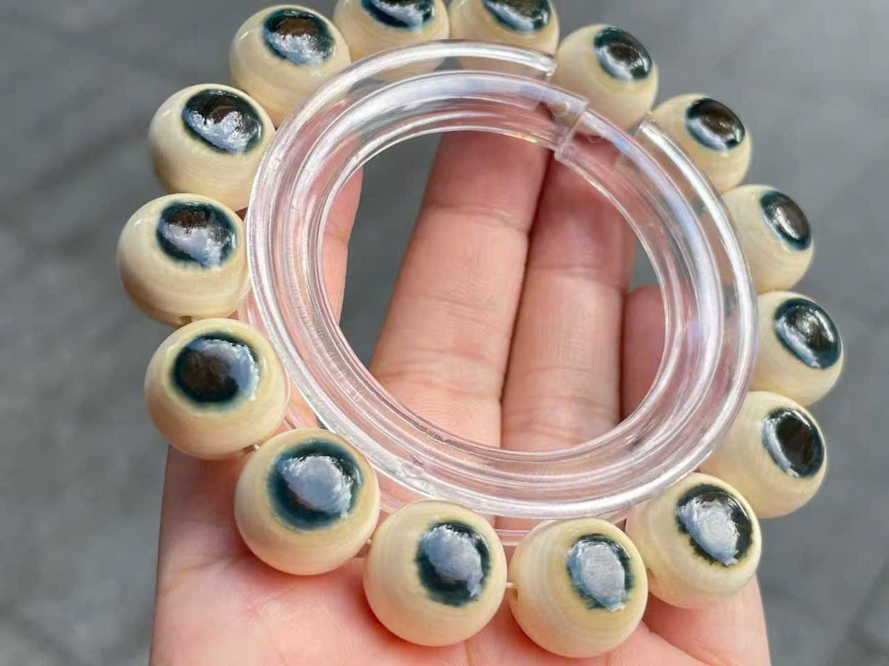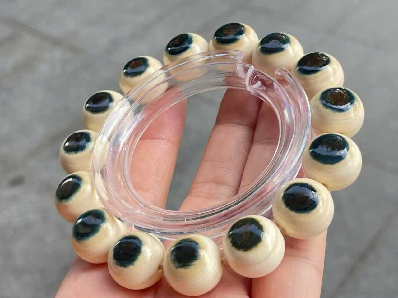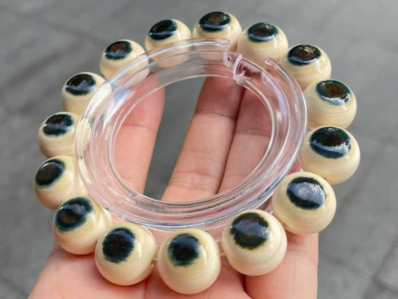 Vòng tay song sắc “Lam Nhãn” | Chất liệu ng.à ma mút, hạt 15mm
