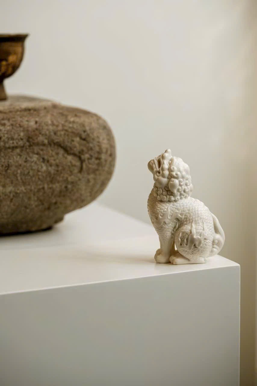 Chế tác thủ công tinh xảo, đôi mắt tròn mở lớn, khí thế hùng bá. Thân ngồi chồm hướng lên, chân mạnh mẽ như muốn cưỡi mây bay thẳng trời cao. Uy võ át trời, dáng như phun lửa nuốt vàng, không giận tự oai. Đường nét căng tràn lực đạo, thần thái cổ dị mà sinh động, thích hợp sưu tàng lẫn thưởng lãm.