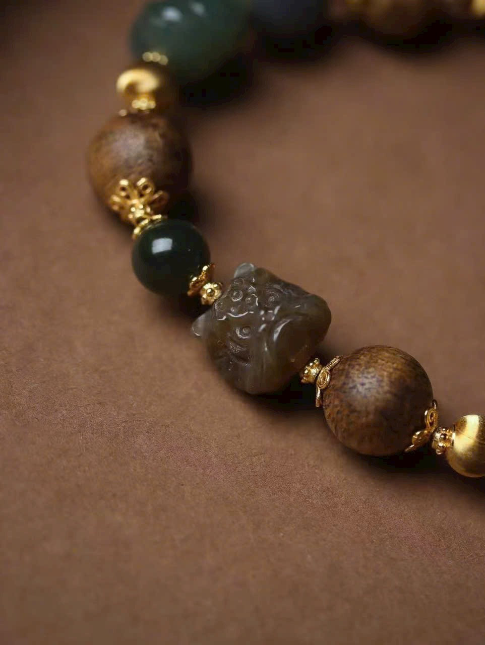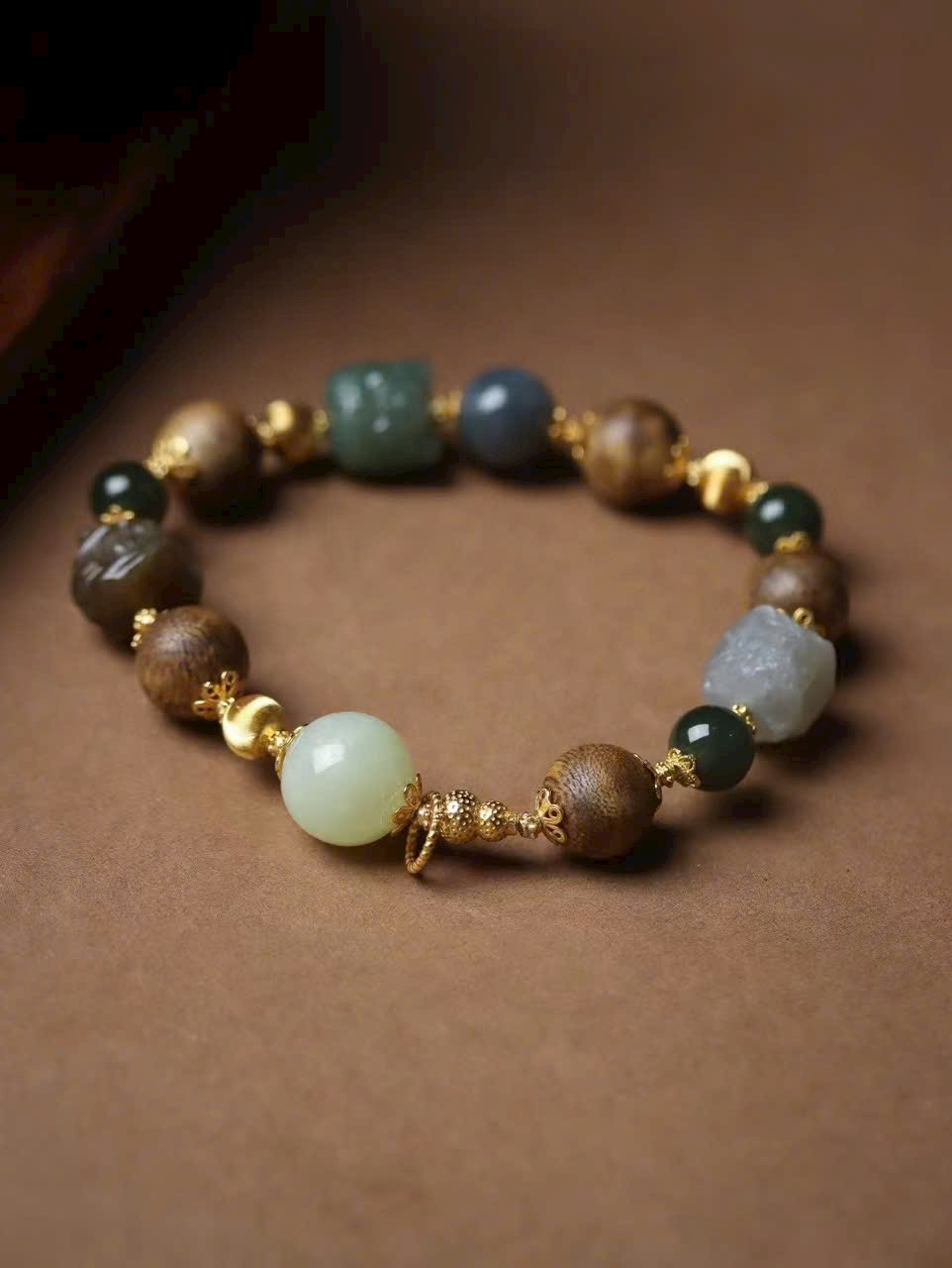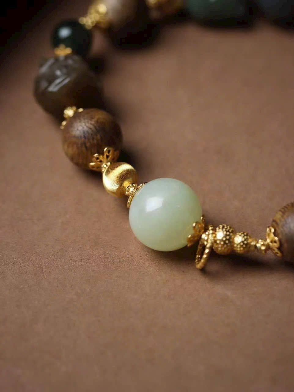 Phối hợp: trầm hương size 10ly kết hợp các loại ngọc và bạc 925 mạ vàng