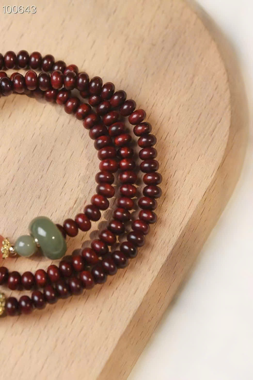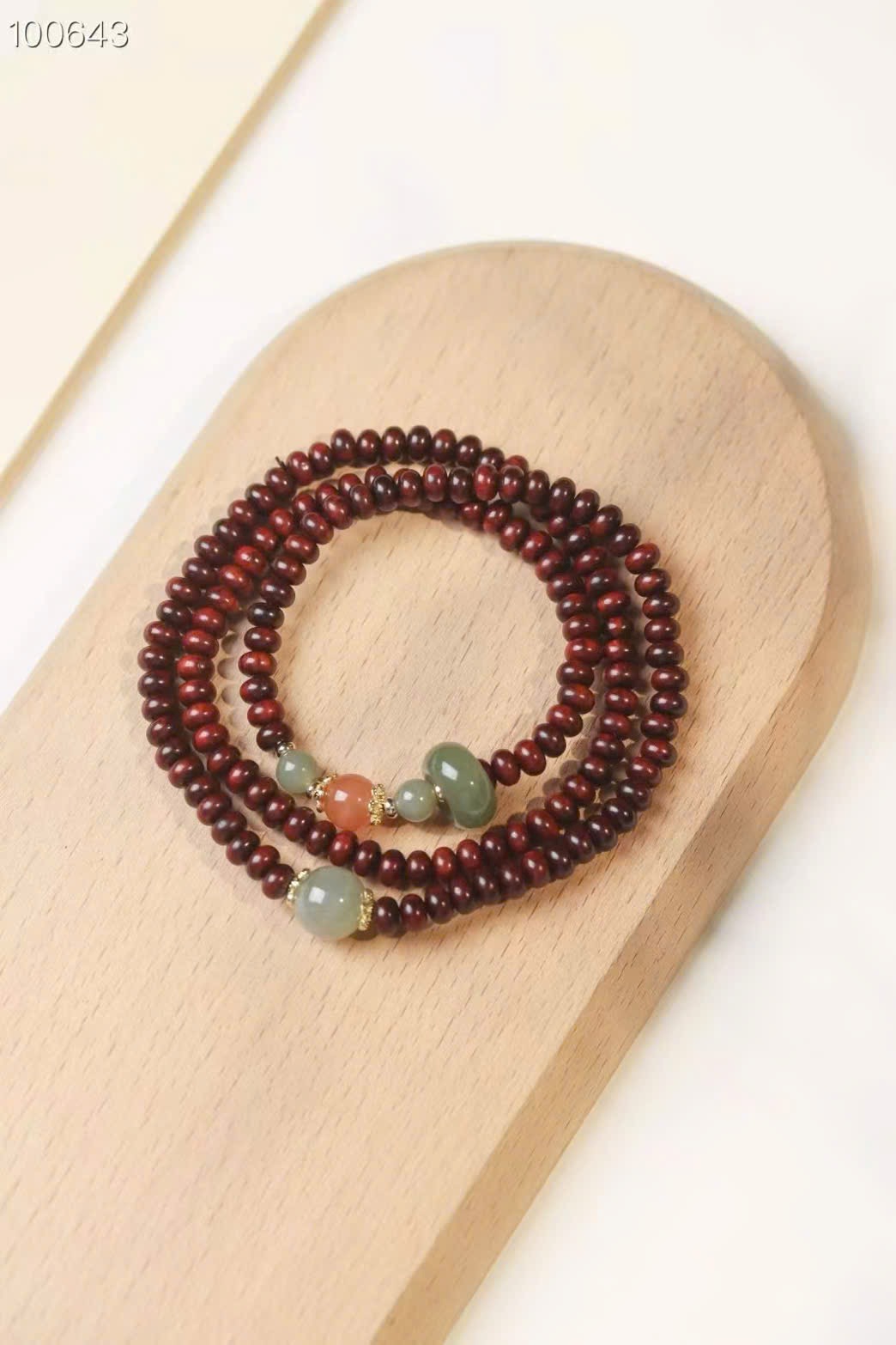 • Size: hạt bàn tính 3×5🧮 phối ngọc Hòa Điền + Nam Hồng