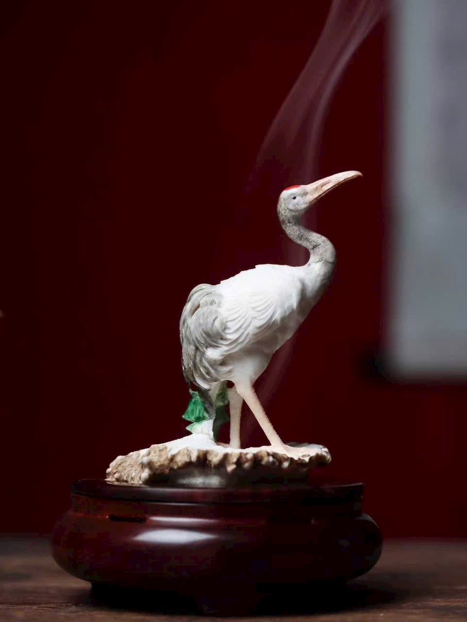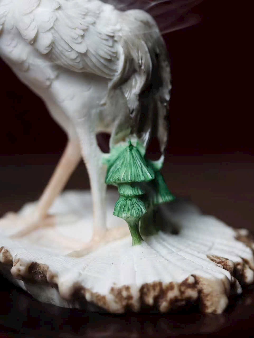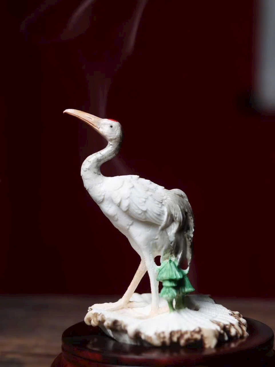 Tượng hạc sinh động, đáng yêu, từng sợi lông được chạm khắc tinh tế, dáng vẻ uyển chuyển như một bức tranh.