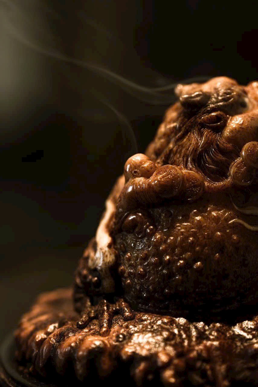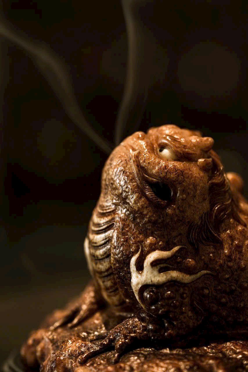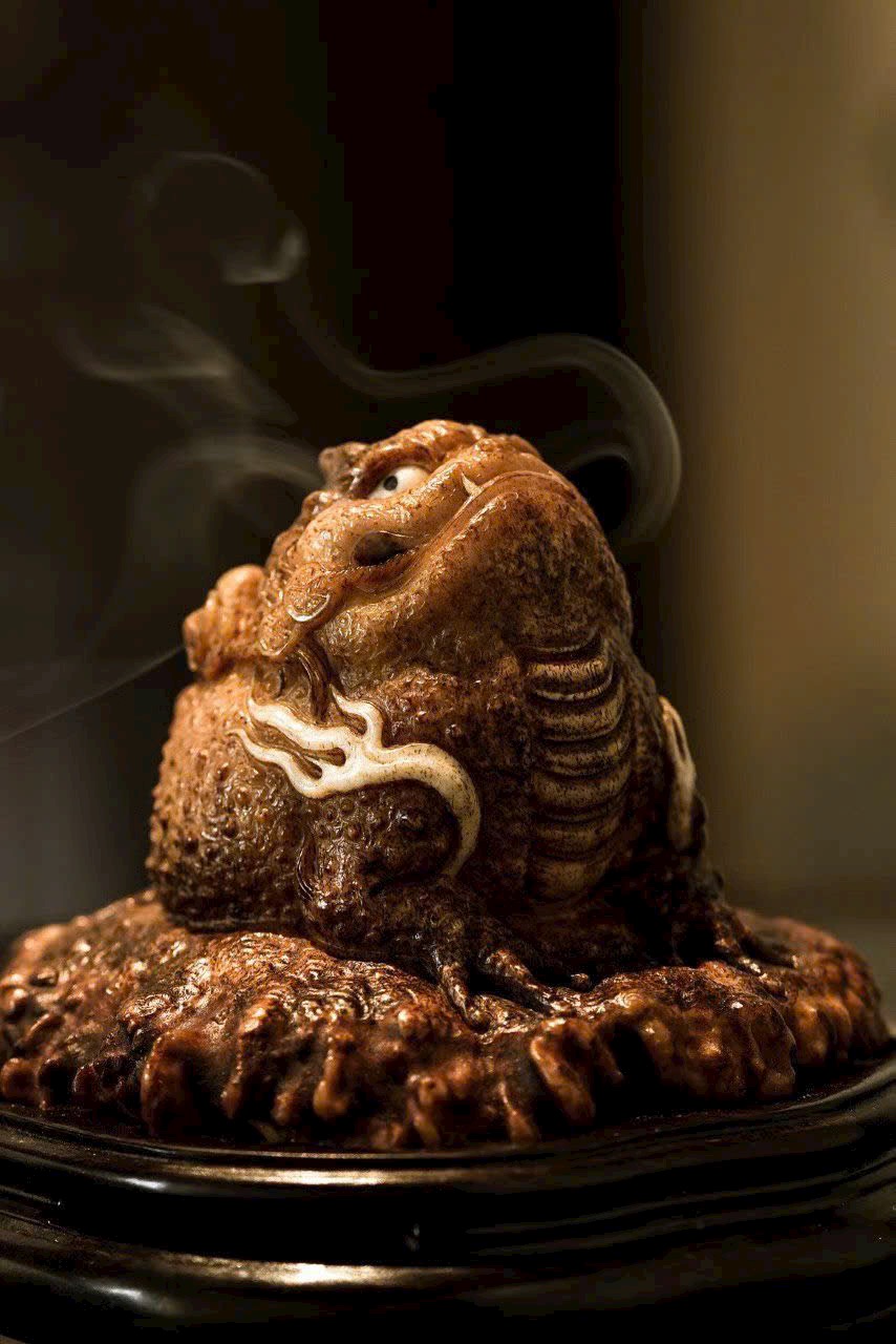 Xông Trầm Kim Thiềm – hoàn toàn thủ công chế tác, dáng vẻ hiền hậu vui tươi, hình thái cổ kỳ, miệng rộng bụng đầy. Khói hương phiêu đãng, mang đậm ý thú văn nhân, thiên nhiên tự tại, hàm chứa ý nghĩa cát tường mỹ mãn.