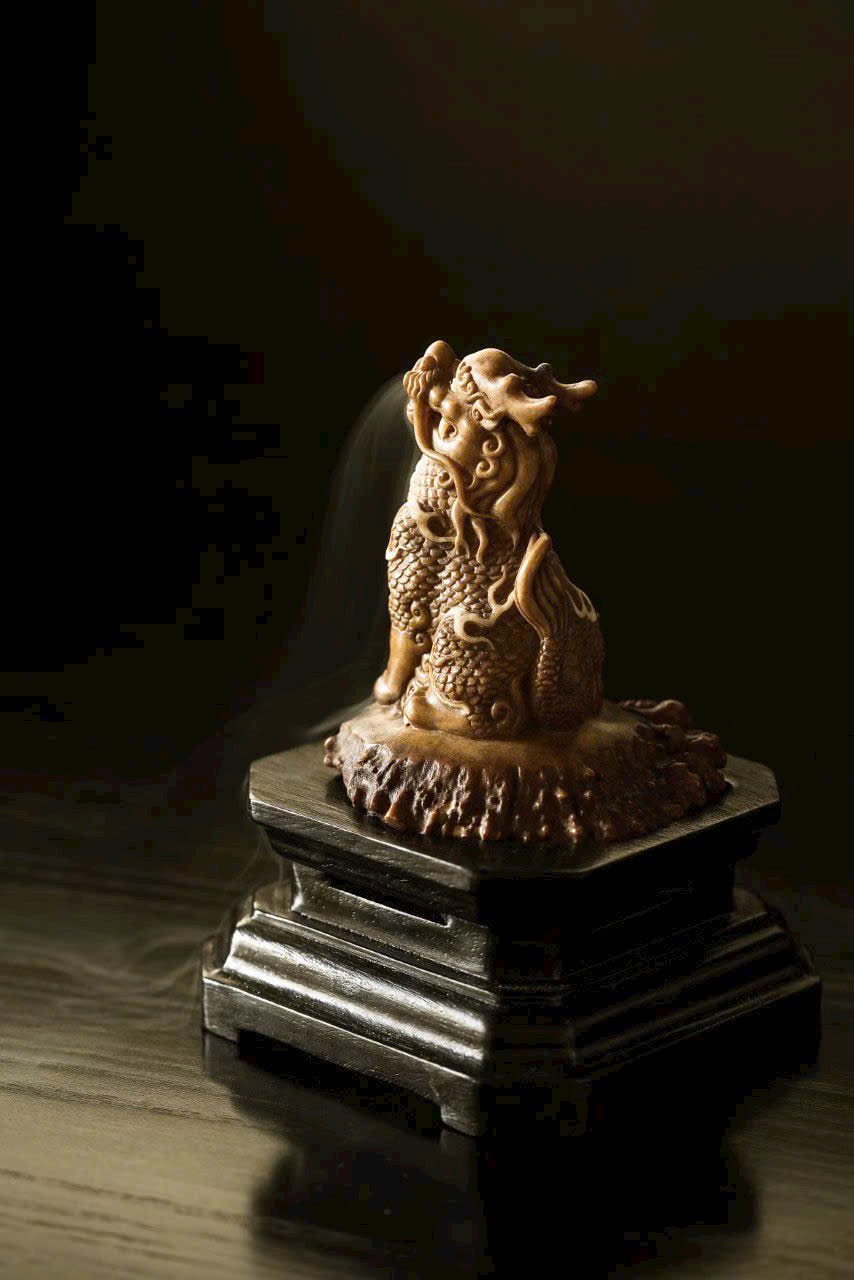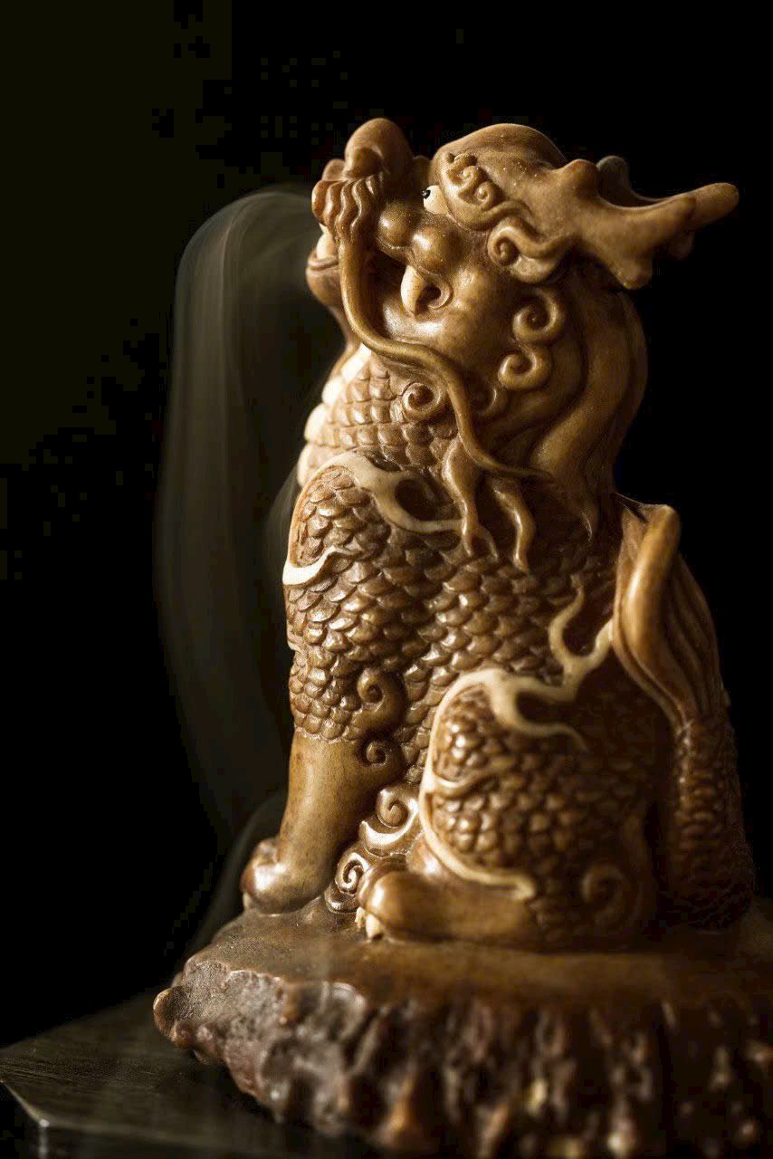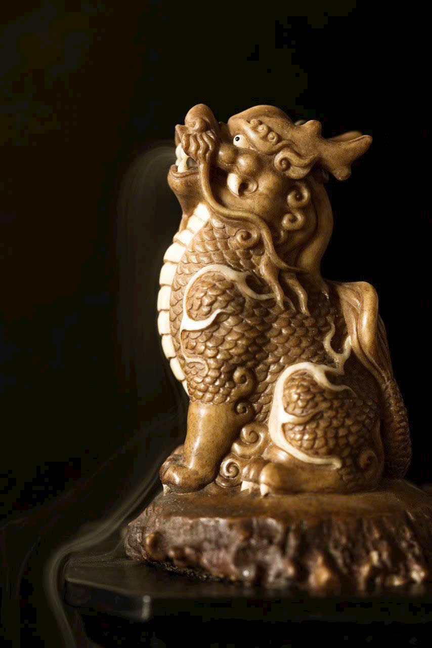 Tác phẩm hoàn toàn thủ công, dáng thức chuẩn mực mang phong vị cổ xưa, trang nhã mà mạnh mẽ. Kỳ Lân khí thế hiên ngang, thân hình căng đầy lực, tư thế phủ phục như sẵn sàng vọt lên mây. Vũ uy trầm hùng, như phun lửa nuốt vàng, oai nghi lẫm liệt mà không cần giận dữ. Đường nét mạnh mẽ, thần thái nổi bật, sắc độ trầm tĩnh thanh tao, thích hợp lưu giữ thưởng ngoạn hay đặt làm pháp khí trang trí.