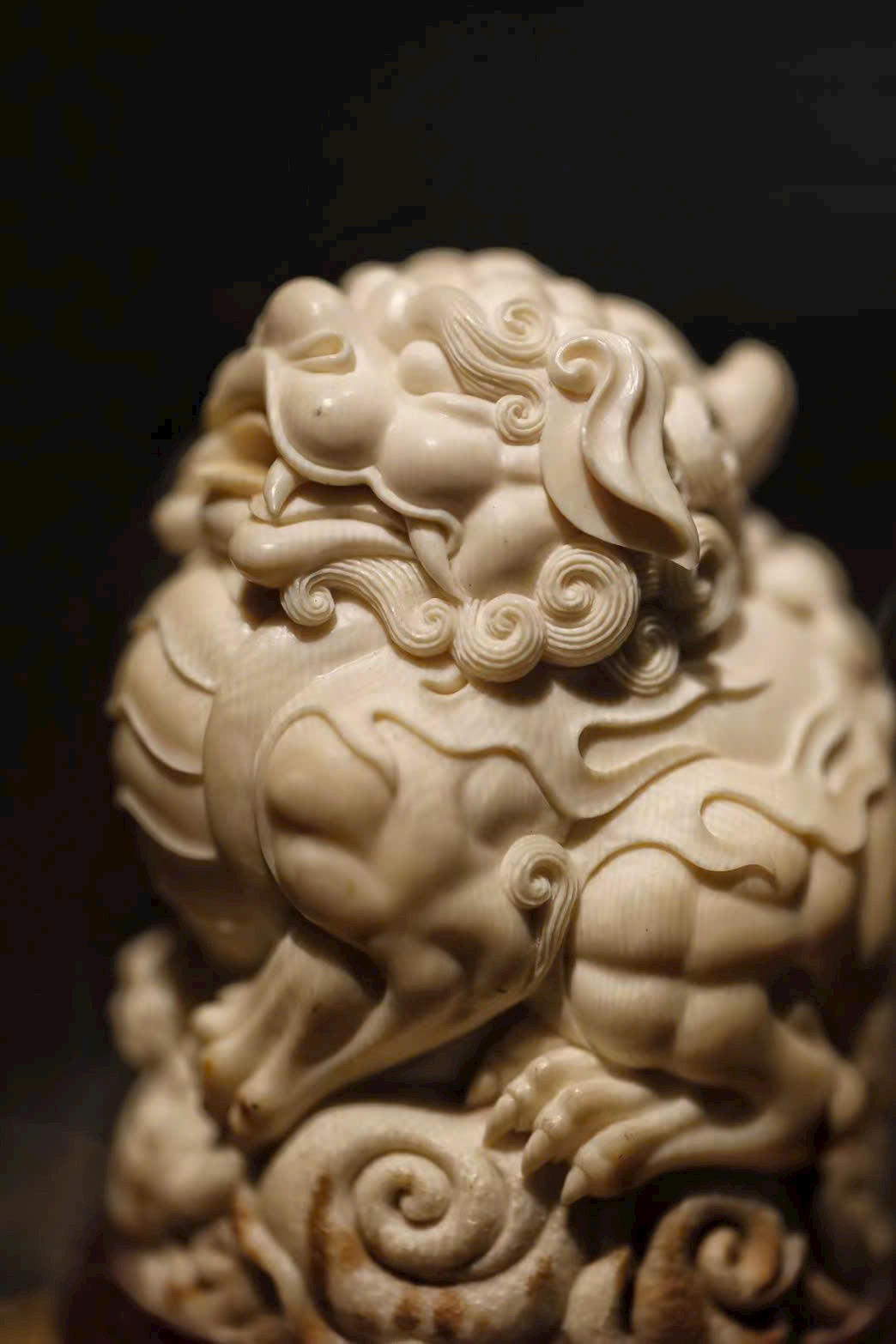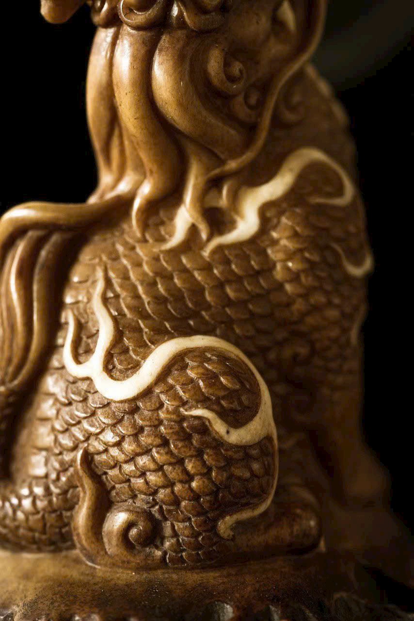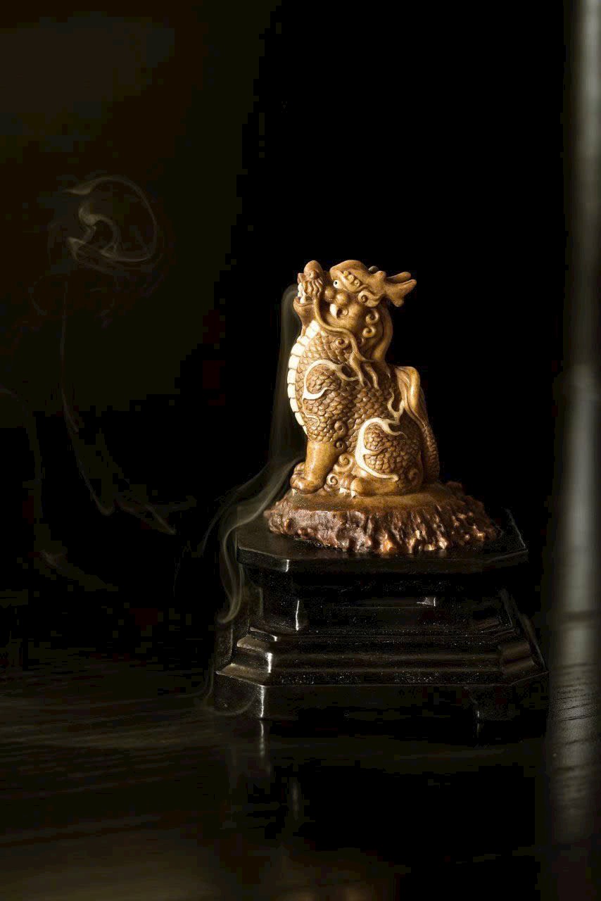 Tác phẩm hoàn toàn thủ công, dáng thức chuẩn mực mang phong vị cổ xưa, trang nhã mà mạnh mẽ. Kỳ Lân khí thế hiên ngang, thân hình căng đầy lực, tư thế phủ phục như sẵn sàng vọt lên mây. Vũ uy trầm hùng, như phun lửa nuốt vàng, oai nghi lẫm liệt mà không cần giận dữ. Đường nét mạnh mẽ, thần thái nổi bật, sắc độ trầm tĩnh thanh tao, thích hợp lưu giữ thưởng ngoạn hay đặt làm pháp khí trang trí.